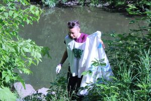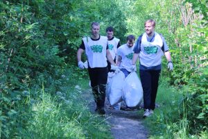 Участники мероприятия очищали берег реки Ушайки, начиная от улицы Киевской, 1. За каждый килограмм собранного мусора команда получала 1 балл.