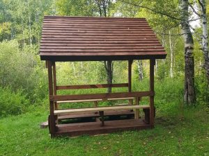 Проведена замена элементов лестницы и отремонтирована старая беседка. Дополнительно в этом году была построена новая уютная беседка для посетителей памятника природы “Звездный ключ”, располагающего в охраной зоне заказника “Ларинский”.