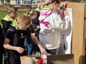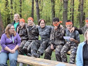 Также ребята проходили через буреломы и верёвочное переправы, разгадывали кроссворд о болотных растениях, определяли на слух диких лесных животных и птиц, по вкусному варенью определяли ягоды и кустарники, определяли животных по следам, хвойные деревья по шишкам, создавали цветы из вторсырья и рисовали общий плакат с экологическими лозунгами.