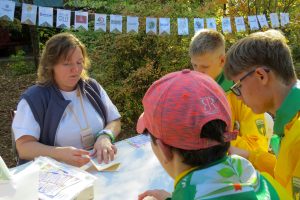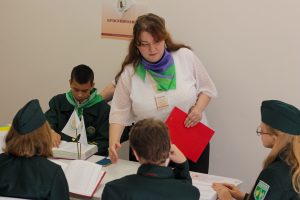В первый день для участники были проведены практико-ориентированные мастер-классы. На 10 локациях с юными лесникам профессионалы делились знаниями по темам лесовосстановления, защиты от вредителей, оказания первой помощи и многое другое. Наши сотрудники работали в локации «Красная книга», на которой рассказали ребятам об особенностях создания и ведения книги. Овчинникова Екатерина научила быстро ориентироваться в информационном содержании книг, рассказала о цветовых маркерах страниц и особенностях визуального представления классификации видов.